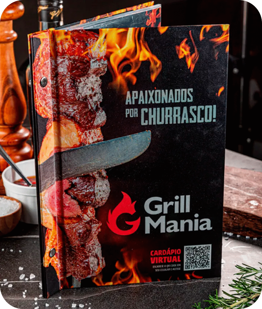 Oferecemos a solução completa: Projeto Gráfico estratégico, produção da Pasta Personalizada e a Impressão de alta qualidade das folhas internas. Entregamos o cardápio pronto para o uso.